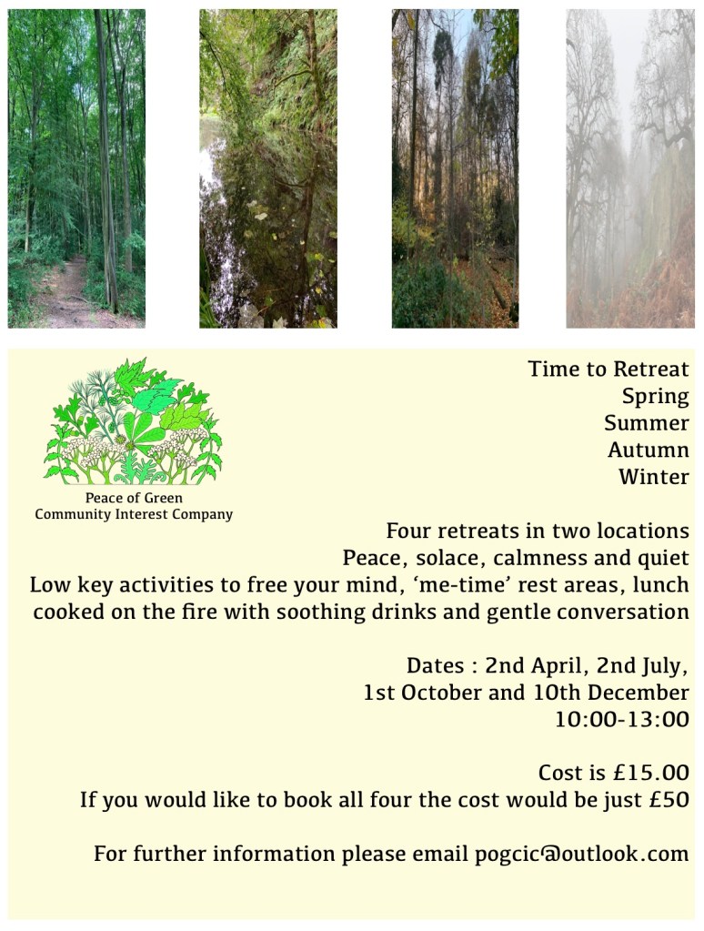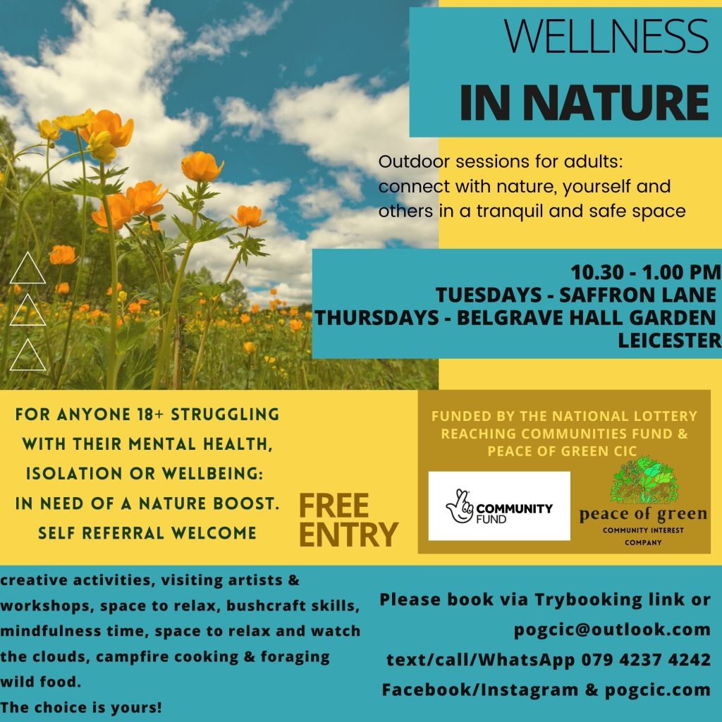 Peace of Green are currently applying for funding for an exciting new project for next year. The funding will allow us to run two outdoor wellbeing groups, for two years, for people with mild to moderate mental health difficulties, or who are feeling isolated or lonely. It would really help us out to hear your opinions and feedback on our project proposals so that we can see if we are on the right track with our ideas. You can do this by completing our very quick survey at the link below. We appreciate your time and effort.