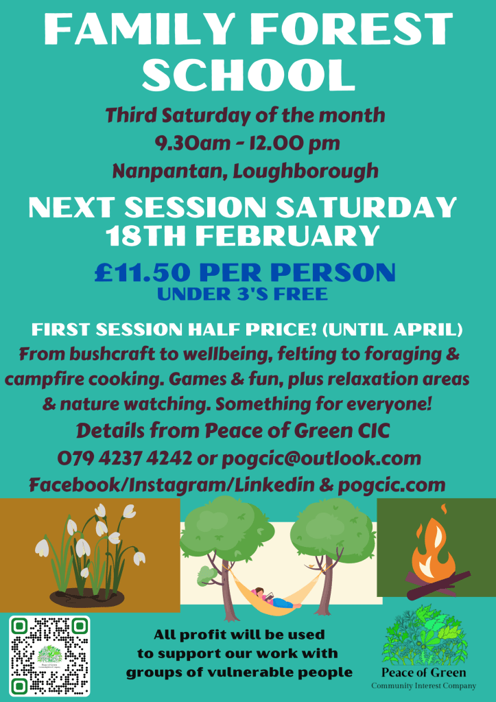 Join us on Saturday 17th December in the woods at Nanpantan, for family seasonal crafts, campfire snacks and drinks, and a bit of nature connection.